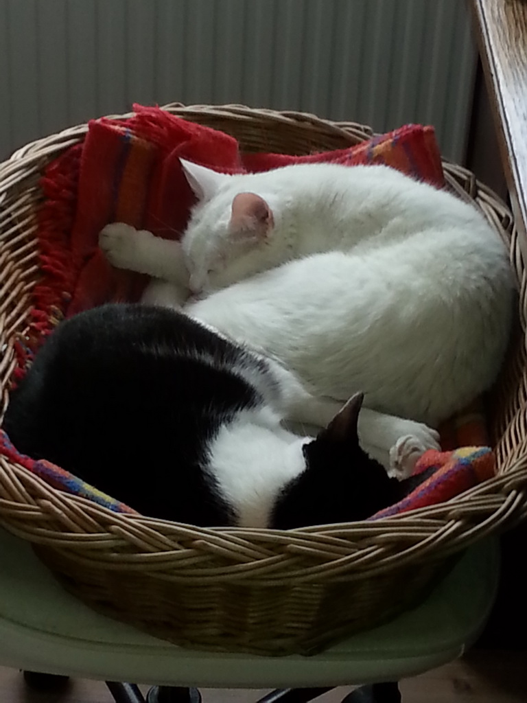 ... und das sind unser Hund Duke und unsere Katzen Cosima (weiß) und Katinka (schwarz/weiß)